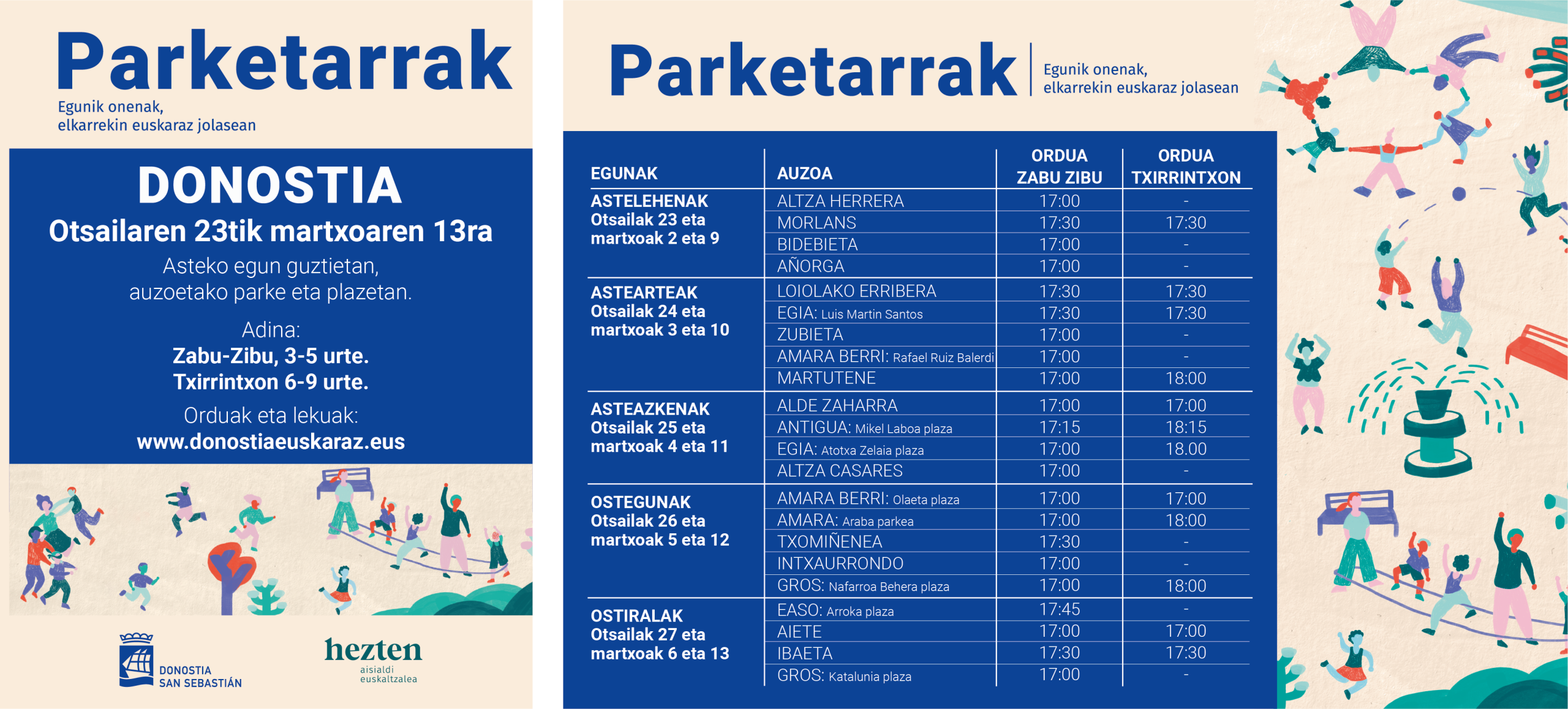Zabu-Zibu et Txirrintxon Parketarrak sont deux groupes du même projet, adaptés à l’âge.