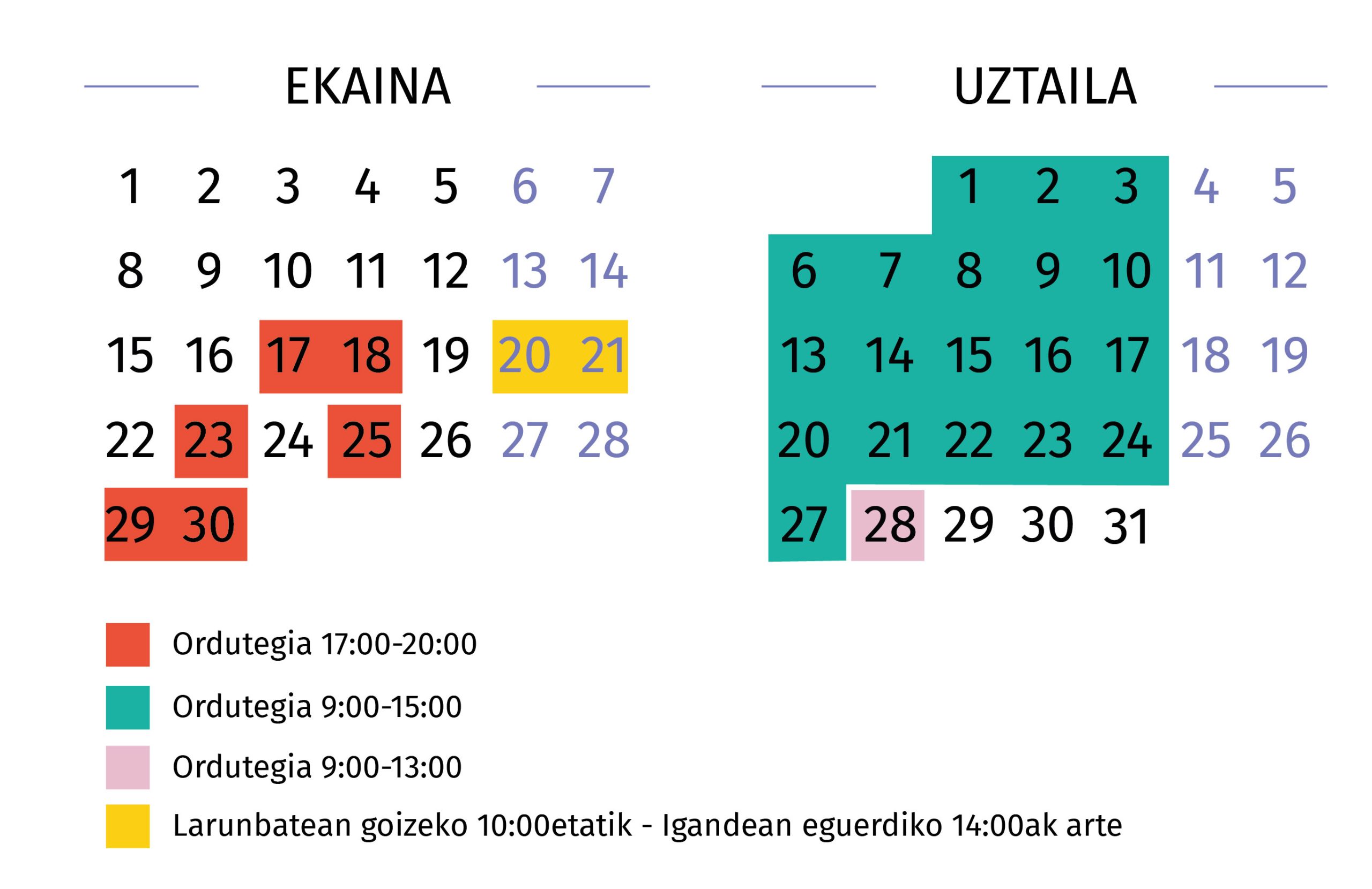 EGUTEGIA: Ekainaren 17an hasi eta uztailaren 28an saio teorikoak bukatuko dira.